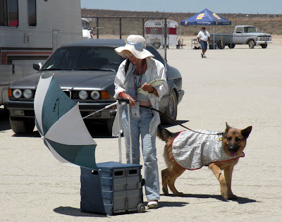 at least this one was potentially benefitting from the thermal blanket and this woman was trying very conscientiously to keep the dog in the shade of the umbrella